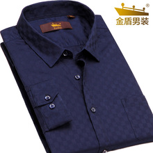 金盾男装2017春秋新品格纹长袖衬衫时尚韩版男士修身长衬衣潮