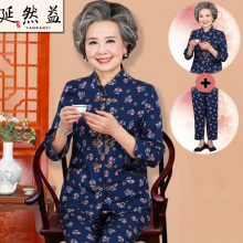 老年人夏装女60-70岁套装老人衣服春装两件套奶奶装长袖老太太