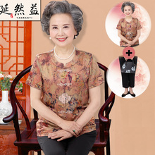 奶奶装夏装套装短袖上衣妈妈两件套中老年人女装60岁70大码衣服80