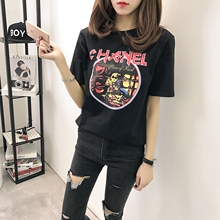 夏装2017新款女装字母人物图案印花短袖打底衫宽松显瘦休闲T恤女