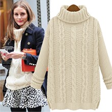 秋冬新款欧美款中长款毛衣女套头高领宽松加厚复古麻花打底衫
