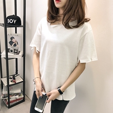短袖上衣女夏2017新款 韩版宽松学生纯色打底衫破洞圆领T恤女