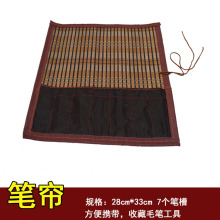 文房四宝竹子笔帘带布袋中号33*28cm保护毛笔卷帘卷毛笔笔帘