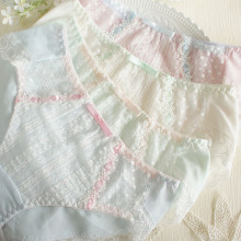 三条包邮日系纯棉中腰少女内裤泡泡蕾丝串丝带女士三角裤蕾丝花边