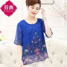 芬典中老年女装夏装大码短袖雪纺衫中年妈妈装夏季圆领t恤上衣女
