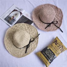 韩国甜美蝴蝶结编织可折叠大檐草帽子女夏季海边度假遮阳帽沙滩帽