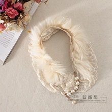 艾系列专柜库存库存剪标白色毛领珍珠蕾丝边装饰节日女假领 08660