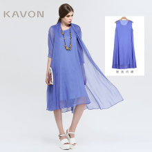 Kavon/卡汶 春夏设计品牌 气质两件套宽松中长可挽七分袖连衣裙女