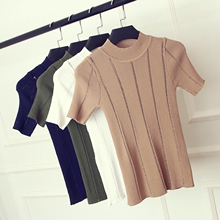 韩版2017春夏装新款学生修身显瘦镂空短袖t恤上衣女针织打底衫潮
