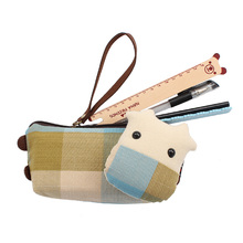 格子牛牛笔袋日韩国卡通可爱文具帆布笔帘大容量多功能学生铅笔盒