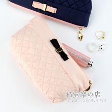 出口日本精致手包 随手拉链甜美包中包 蝴蝶结菱形格刺绣化妆包