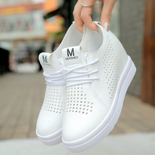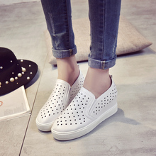 隐形内增高女鞋2016春夏季新款低帮鞋白色透气镂空一脚蹬休闲鞋潮