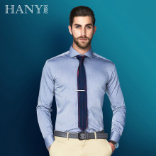 HANY汉尼商务正装男衬衫纯棉DP免烫衬衫修身蓝长袖衬衣