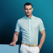 【限时特惠】HANY汉尼男士短袖衬衫商务透气男短袖天丝修身衬衣夏