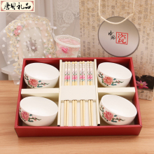 中国瓷釉下彩4碗4筷送礼餐具套装 婚庆回礼餐具礼品碗筷餐具8件套