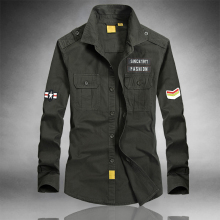 秋季新款男士空军长袖衬衫青年大码军装纯棉衬衣修身休闲工装寸衫