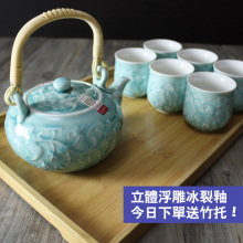 送竹托盘 景德镇陶瓷功夫茶具套装家用茶壶茶杯冰裂釉包邮 礼品盒