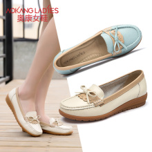 奥康女鞋真皮豆豆鞋女 护士平底单鞋牛皮蝴蝶结装饰舒适豆豆鞋
