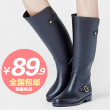 DRIPDROP女士春夏时尚雨鞋明星雨靴高筒套鞋扣带仿皮马靴水鞋
