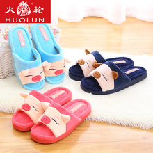 火轮春秋情侣居家软底开口拖鞋男女可爱卡通小猪防滑地板棉拖鞋冬