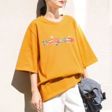 王妃家白色大码长款纯棉个性刺绣字母加厚宽松韩国bf风短袖t恤女