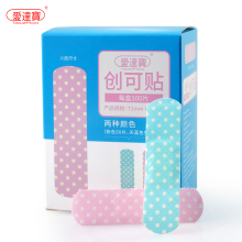 爱达宝 100片 卡通创可贴 可爱韩国创口贴透气 粉蓝两色圆点
