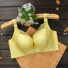 女性感小胸平胸厚款内衣夏季无磁蕾丝胸罩上托聚拢调整型文胸透气