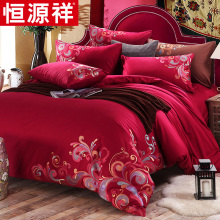 恒源祥家纺刺绣婚庆四件套大红结婚床品套件六床上用品1.8m