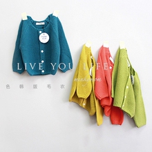定制款 韩版童装 2016秋冬新品 女童纯色棉线针织开衫宽松款毛衣
