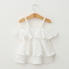天使家欧美童装2017夏装 女童小性感荷叶连肩吊带衫 宝宝棉麻上衣