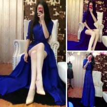 春季韩版女装2016气质女王左岸潇同款开叉宴会裙礼服裙连衣裙长裙