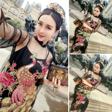 2015夏季无袖性感吊带+刺绣纯手工钉珠孔雀防嗮长款连衣裙套装