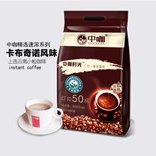中咖速溶纯黑咖啡粉蓝山风味美式无蔗糖云南小粒咖啡苦咖啡50条装
