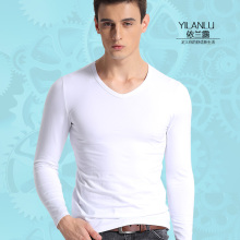 2件包邮 男士莱卡棉保暖内衣单件上衣V领薄款秋衣打底白 依兰露