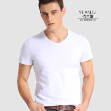 依兰露男士内衣背心半袖纯棉紧身V领短袖打底T恤汗衫修身薄款夏白