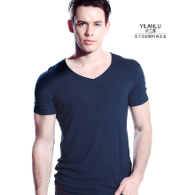依兰露男士短袖T恤无痕莫代尔紧身短袖内衣V领半袖背心薄打底纯色