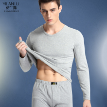 依兰露男士保暖内衣V领莱卡棉套装圆领莫代尔薄秋衣秋裤修身打底
