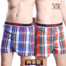 依兰露男士内裤男生平角裤宽松短裤格子阿罗裤纯棉布家居睡裤四角