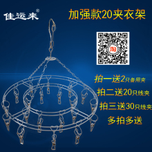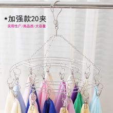 实心不锈钢晾衣架多夹子 晾内衣裤防风衣架 20夹防滑圆形袜子架