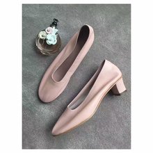 清仓中跟女鞋圆头浅口高跟鞋百搭英伦风粗跟裸色单鞋