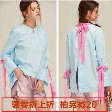 2017夏新款时尚蝴蝶结系带长袖衬衫休闲百搭纯棉宽松开叉上衣女潮