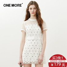 ONE MORE文墨高腰通勤欧根纱圆点连衣裙女短裙A字裙