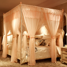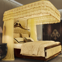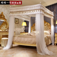 欧式宫廷婚庆蚊帐 加密方顶落地式床幔粗不锈钢三开门蚊双层蚊帐
