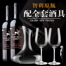 智利原瓶原装进口红酒美乐干红葡萄酒双支送水晶红酒杯醒酒器
