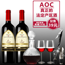 法国原瓶进口AOC干红葡萄酒红酒2支装正品特价送酒具两支装非整箱