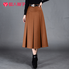 半身裙秋冬新款a字裙中长款百褶裙不规则毛呢裙子半身长裙冬裙女