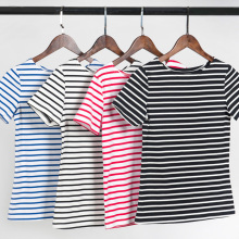 双生儿2016新款纯棉宽松短袖条纹女式T恤衫外穿一字领打底衫上衣