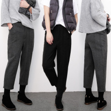萝卜裤秋冬毛呢阔腿裤女九分裤宽松哈伦裤长裤黑色直筒高腰休闲裤