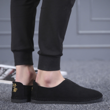 夏季帆布鞋男低帮懒人鞋刺绣老北京布鞋男鞋子一脚蹬青年工作鞋潮