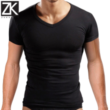 ZK男士T恤短袖V领半袖背心修身吸汗打底衫有加肥加大码包邮